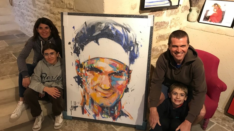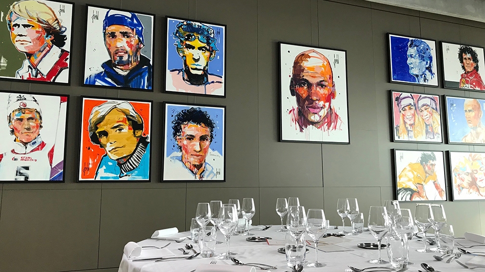 Alexandra: En parallèle, nous avions découvert le travail de David Jamin, un artiste-peintre contemporain, il y a quelques années lors de vacances dans le Luberon. Ni Rémi ni moi n’avons de background particulier dans la culture mais, pour la première fois, nous avons été touchés par un tableau. Depuis 20 ans, David Jamin réalise des portraits très stylisés, parfois des anonymes, parfois des personnalités connues. Nous lui avons demandé s’il avait des sportifs dans son catalogue, mais ce n’était pas le cas. Et soudain, nous avons fait le lien. Nous avons passé une commande, que nous allions exposer puis vendre aux enchères pour soutenir Léman hope.