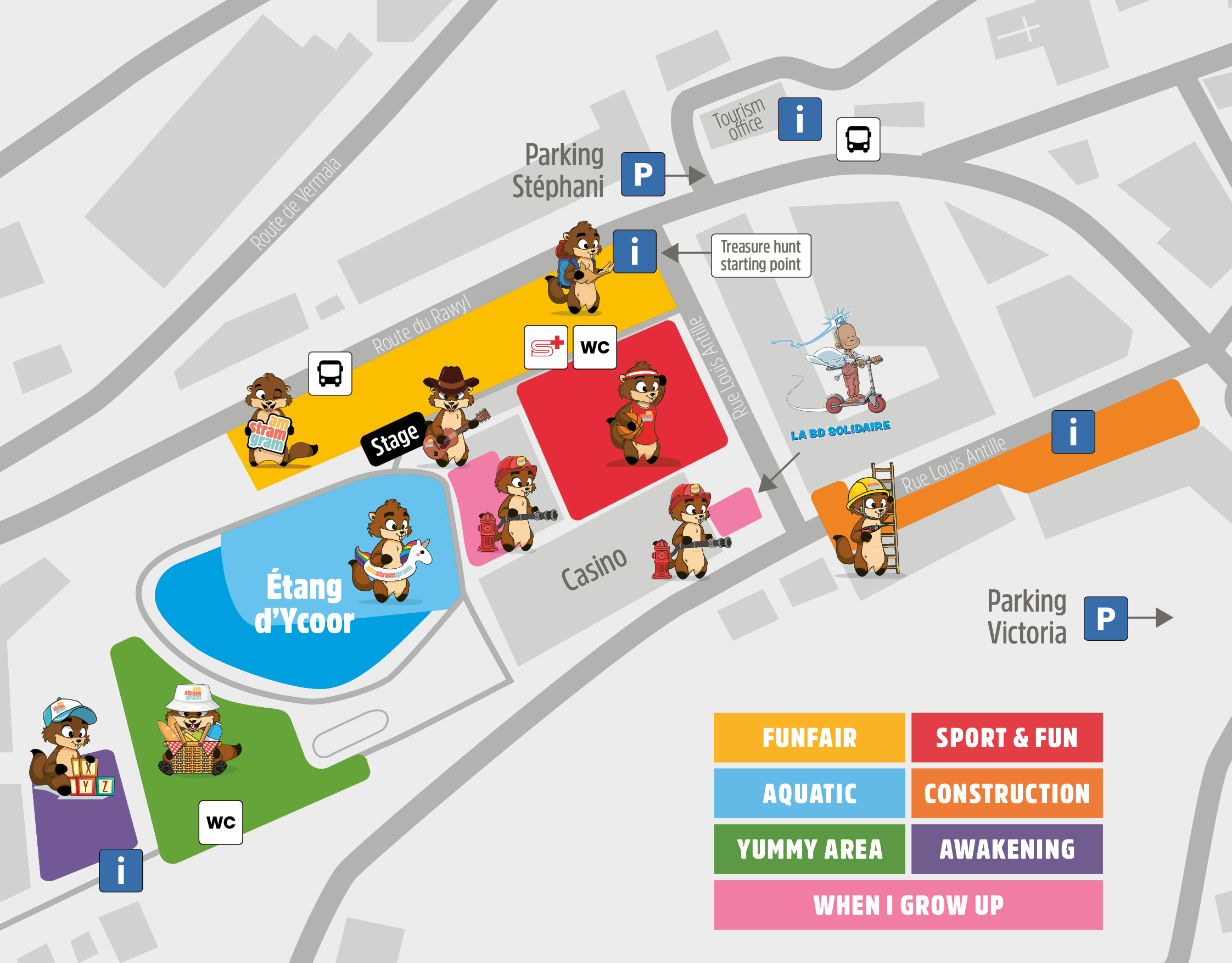 Am Stram Gram... A festival which takes you on a journey through different worlds: let off steam in a 100% movement area, cool off in the aquatic area, fly through the air on a giant trampoline, or explore the jobs you dream of doing one day.