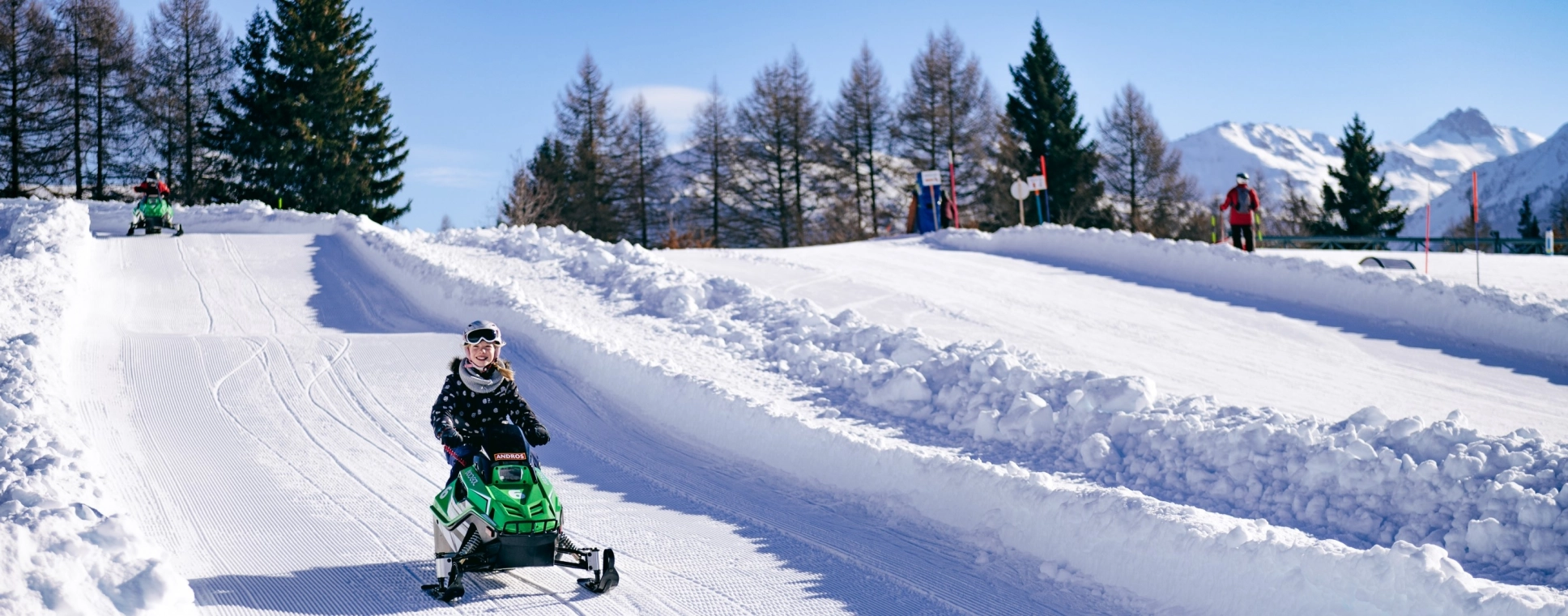 Pour les enfants de 5 à 12 ans, il est possible de s'amuser sur des motoneiges électriques.