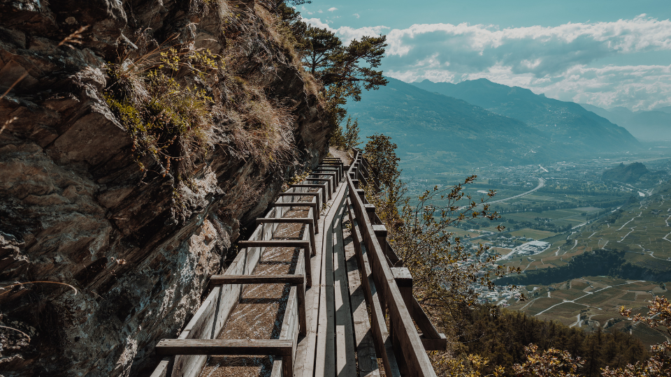 La passeggiata del Grand Bisse de Lens collega il villaggio di Icogne a quello di Chermignon-d’en-Bas (o viceversa). Costruito nel XV secolo al fine di incanalare l'acqua della Lienne per irrigare i pendii, oggi canali e passerelle consentono di girare attorno alla collina dello Châtelard su cui troneggia maestosa la statua del Christ-Roi. Approfittane per fermarti ad ammirare una delle viste più belle del Vallese, a picco sulla valle del Rodano.