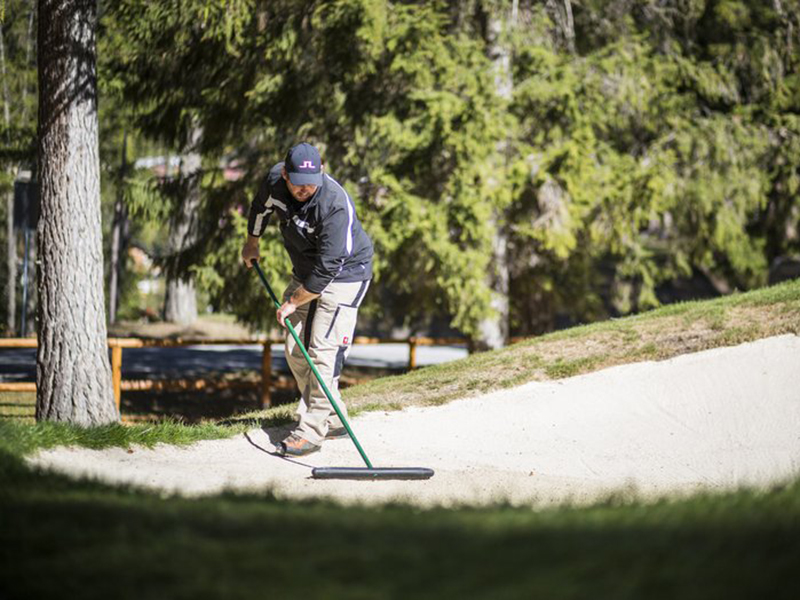 Occuparsi del prato, tagliare l'erba con precisione millimetrica e accertarsi che sia sana e abbondante: è soltanto uno dei tanti compiti di un greenkeeper. Roland si occupa anche dei percorsi e degli specchi d'acqua, di potare gli alberi e scarificare il prato – l'erba viene liberata dal muschio e dalle erbacce in modo che possa respirare meglio. Ma un greenkeeper posiziona anche buche e bandierine, lavoro che richiede un'intuizione e un'esperienza molto particolari. Per questo è pressoché indispensabile che un greenkeeper sia anche giocatore di golf. "Bisogna potersi immedesimare in ogni momento nel giocatore, che si sia professionisti o dilettanti. E per sapere se una buca è difficile, bisogna provarla di persona", dice Roland.