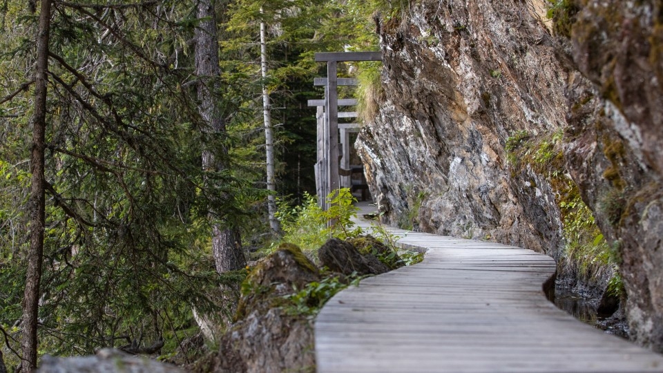 Strada facendo, si rimane estasiati davanti ai paesaggi incredibili, ai passaggi sotto le rocce, alla natura (magica!) e a tanto altro. Si percorre poi la passerella sospesa (per un bel momento carico di adrenalina): sospesa nel vuoto a 70 m da terra, questa passerella è lunga 120m.