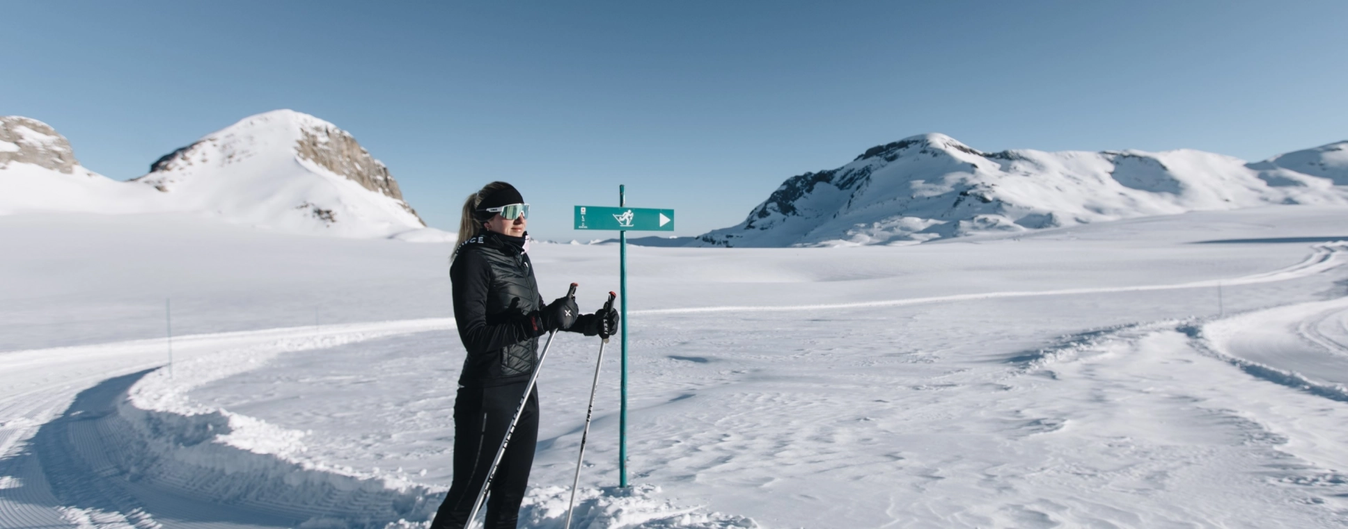 Da dicembre a marzo, le Golf (sul famoso campo Severiano Ballesteros), Moubra (un anello intorno all’omonimo lago), Les Briesses (nei boschi, sui sentieri del percorso vita) e Plaine Morte (sul ghiacciaio, a 3.000 metri di quota) attendono gli appassionati di sci di fondo.
